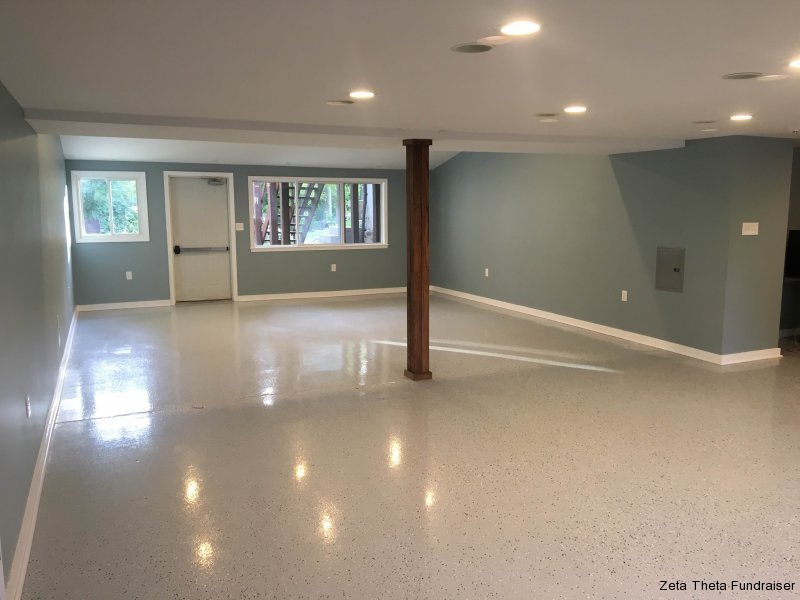 7/29/2016 The cafeteria had been put off for years since it was a Segway for wiring and plumbing to the addition. The drop ceiling was removed several years prior and we were still utilizing the radiators for heating this area. The wood paneling was dated and a refresh was needed. We gutted everything and decided to install a new air handler so we could add AC to the café. All lighting was upgraded to LED and wires were run in the walls to power speakers and a projectors to keep everything clean and concealed. The result looks fabulous and the undergraduate brothers are very appreciative.